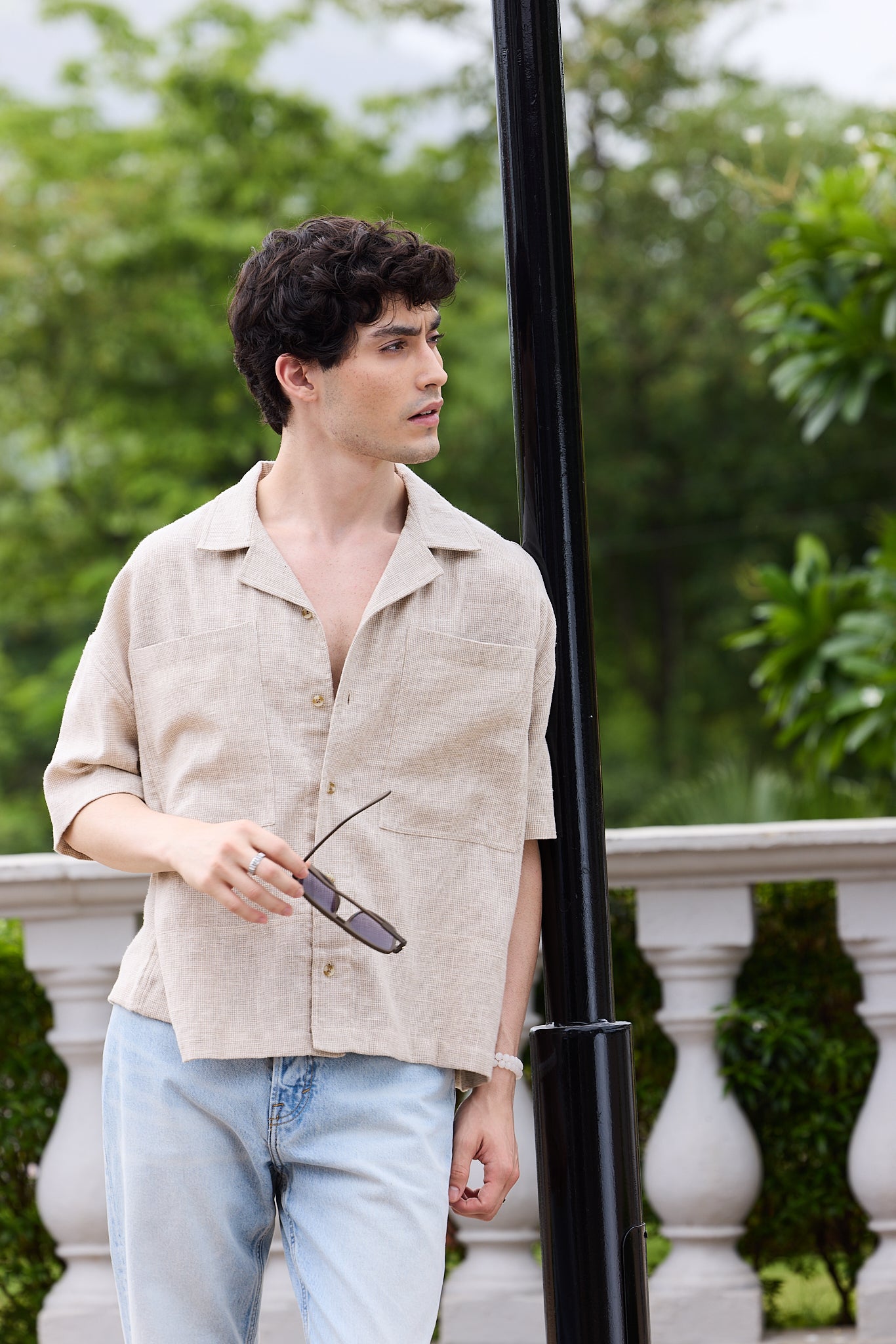 Elevate your casual wardrobe with the effortless charm of our Sahara Beige Vacation Luxe Oversized Twin Pocket Crop Shirt. The warm beige tone captures a desert-inspired aesthetic, while the cropped length adds a contemporary twist.