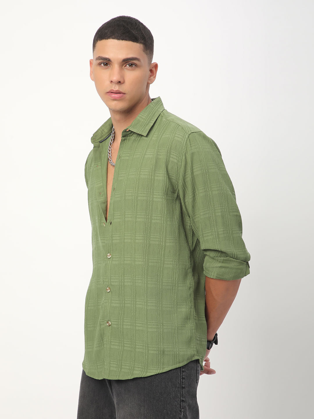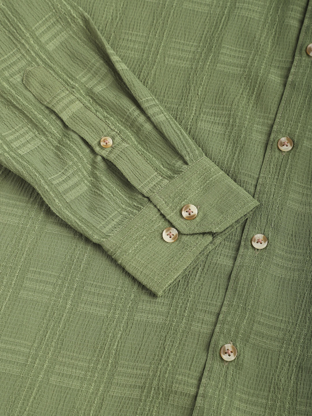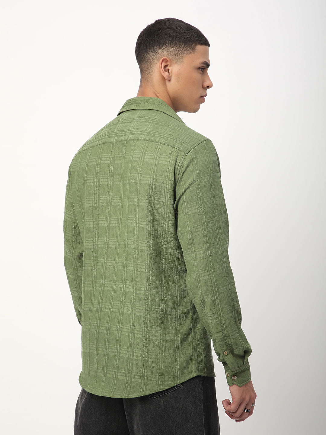 Sap Green Textured Creased Shirt
