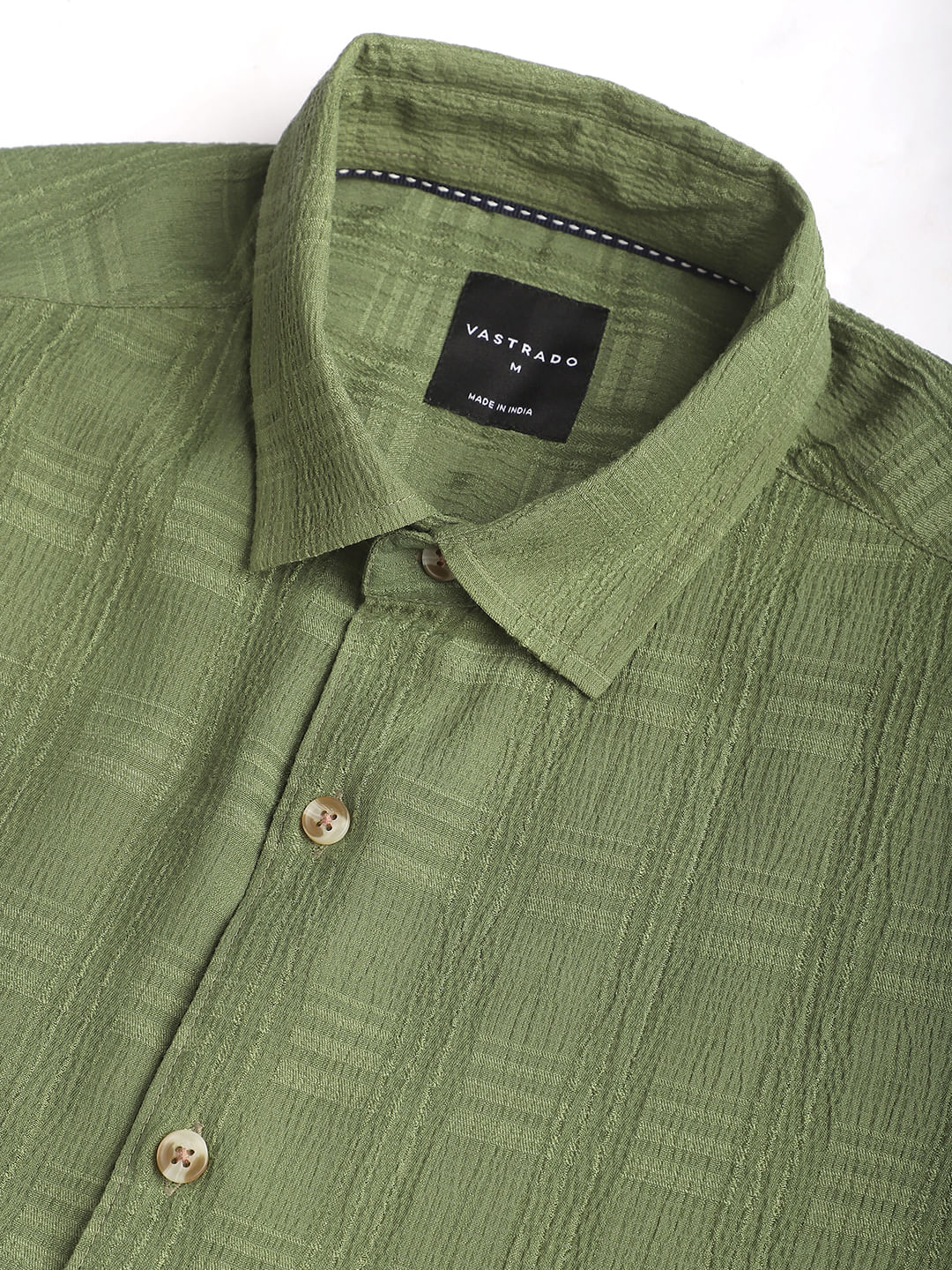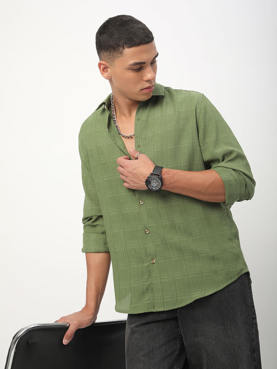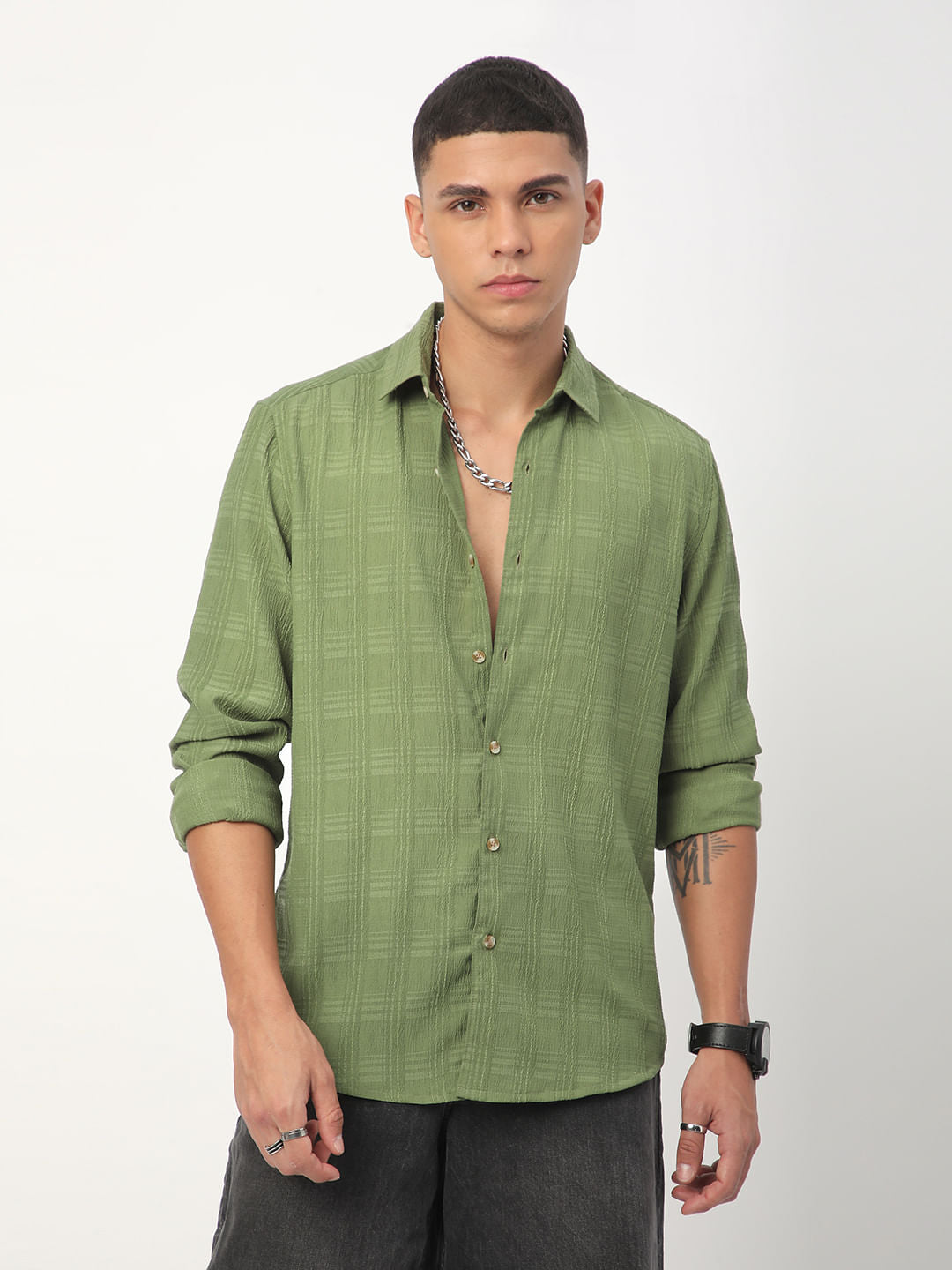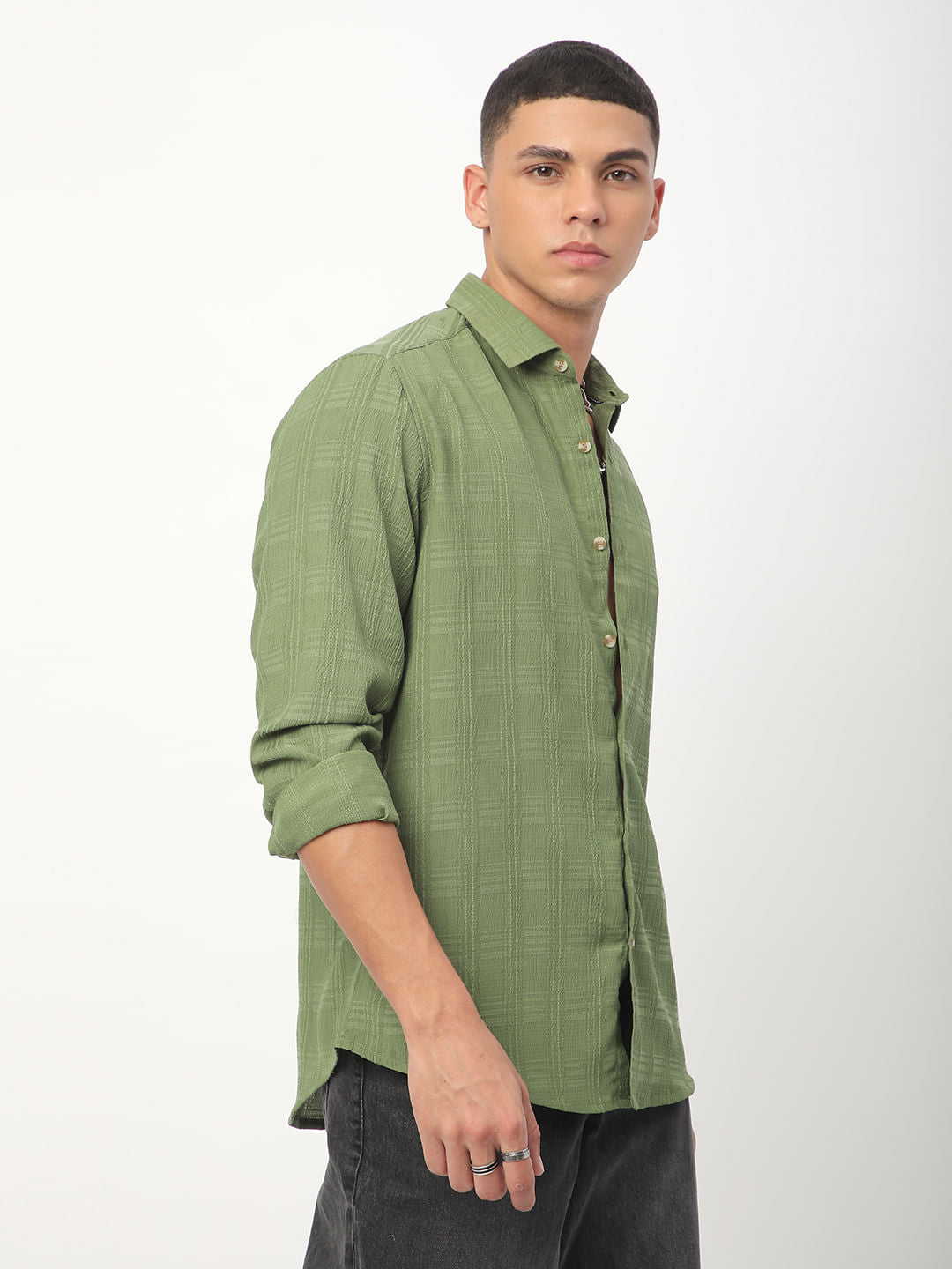 Sap Green Textured Creased Shirt