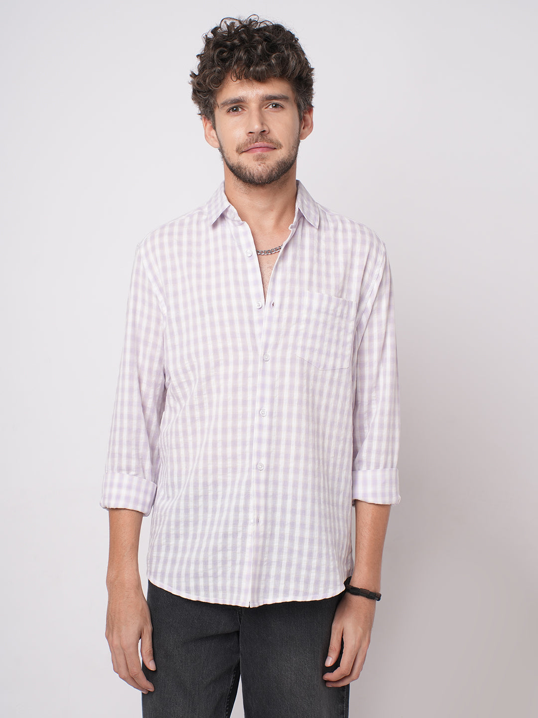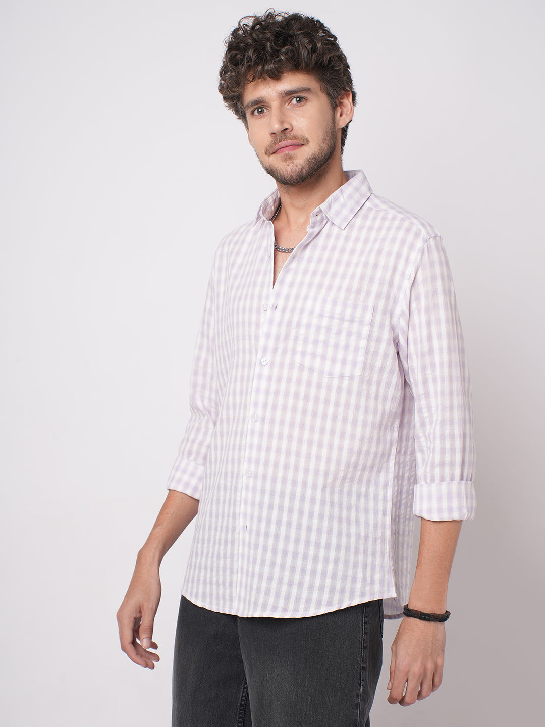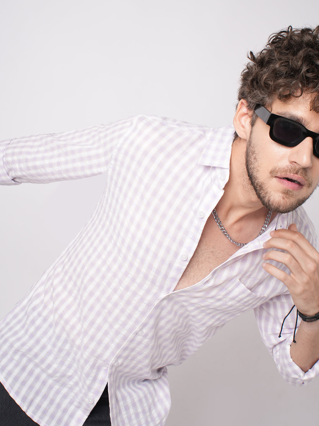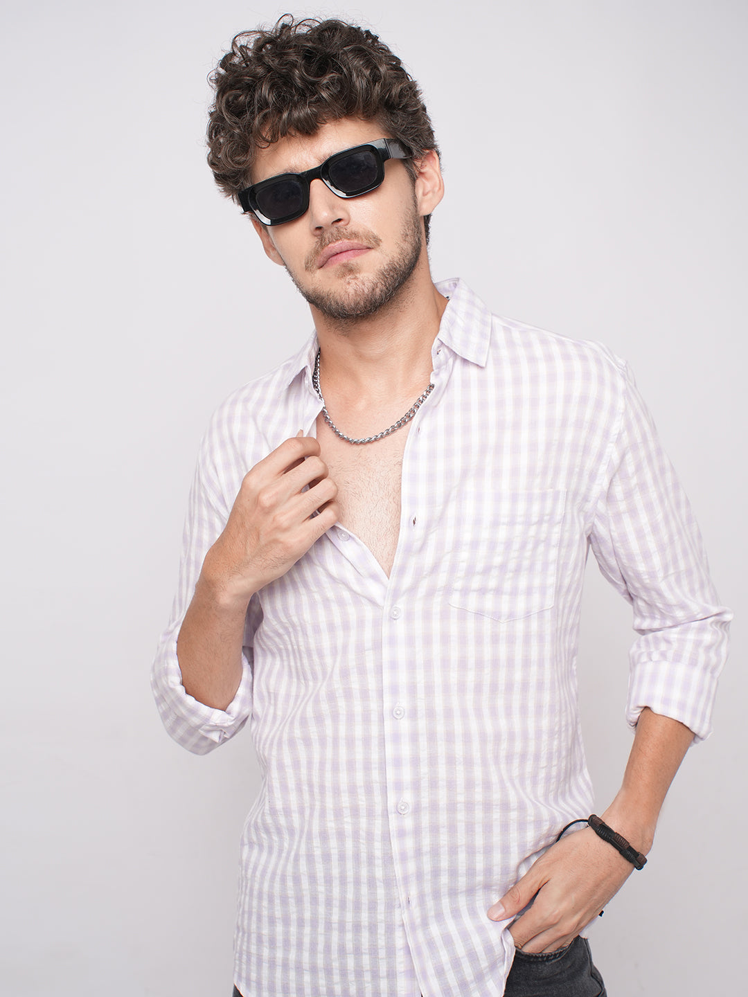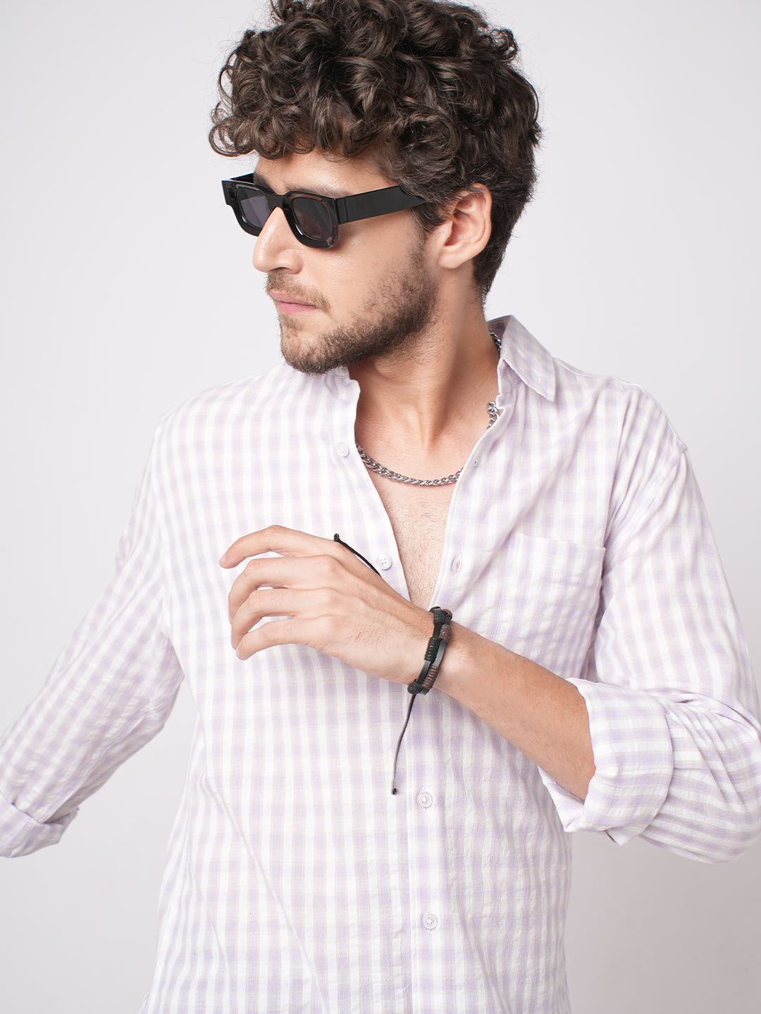 Experience comfort without compromise in this Soft Lilac Shadow Checks Seersucker Everyday Shirt. Crafted with breathable fabric and a delicate check design, it’s a versatile essential that adds understated elegance to your daily style.