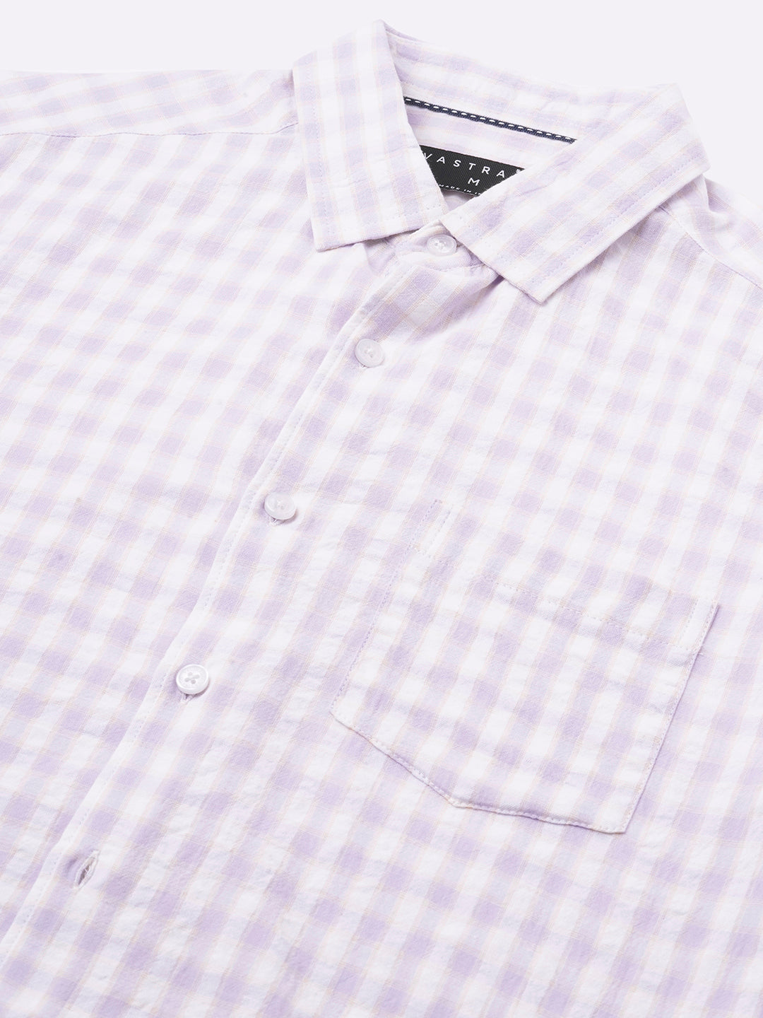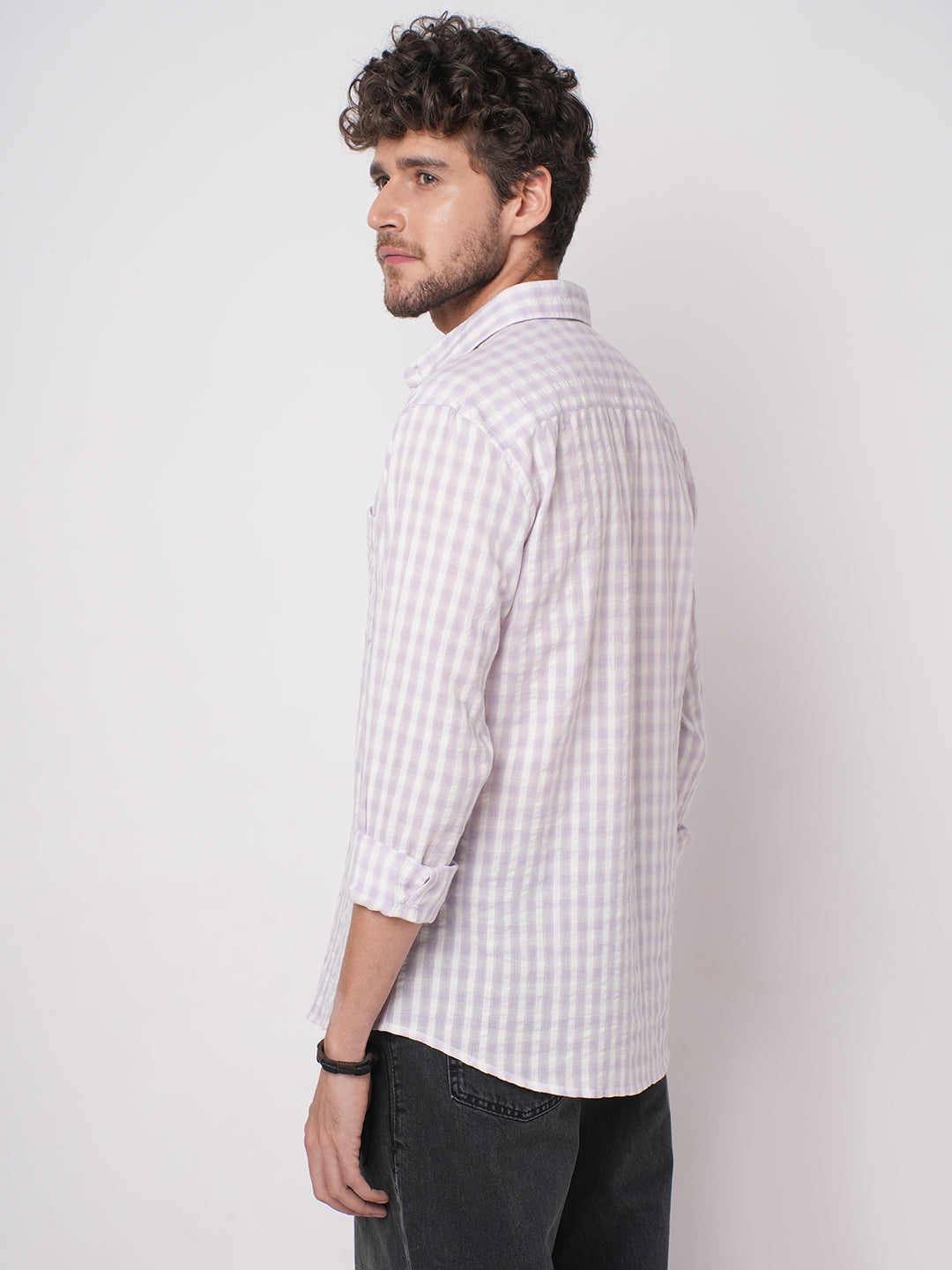 Soft Lilac Shadow Checks Seersucker Everyday Shirt