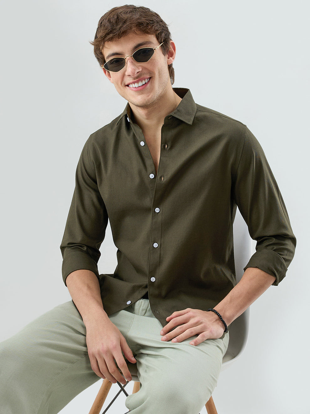 Add a versatile touch to your wardrobe with this Solid Olive Everyday Shirt. Crafted from soft, breathable fabric, it ensures comfort throughout the day. Perfect for office wear, casual outings, or smart-casual looks.