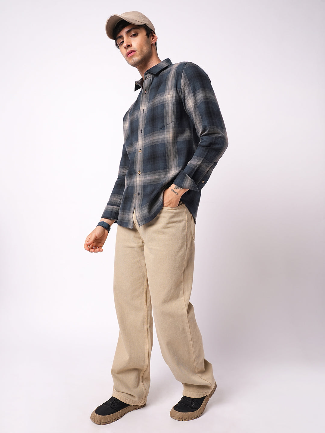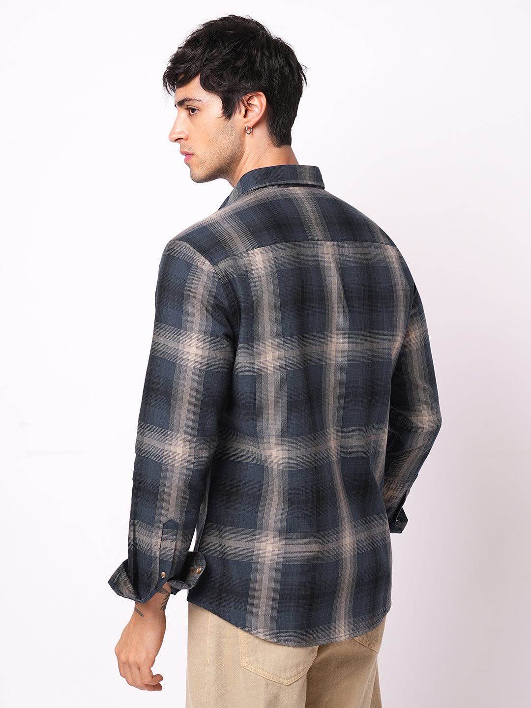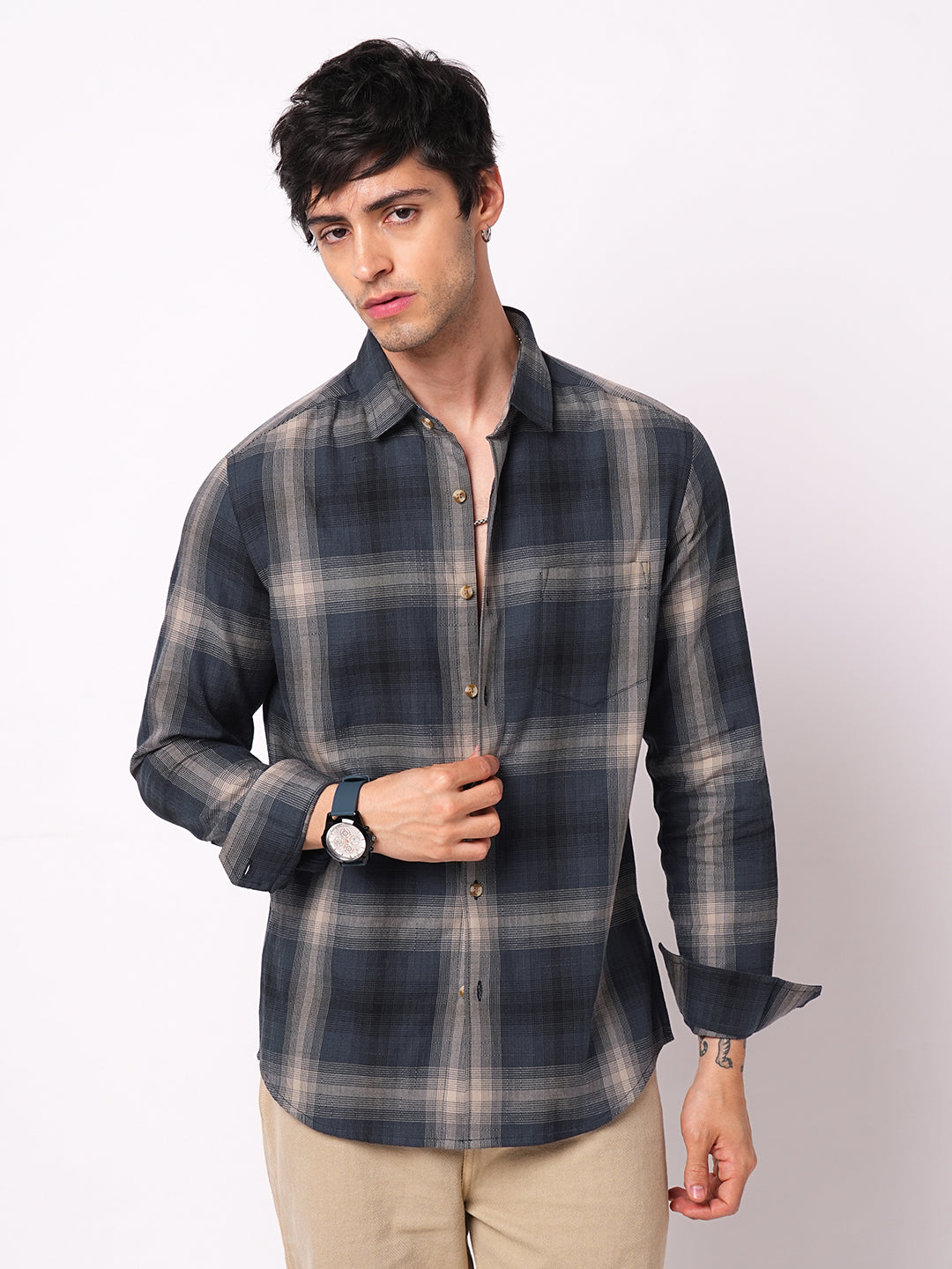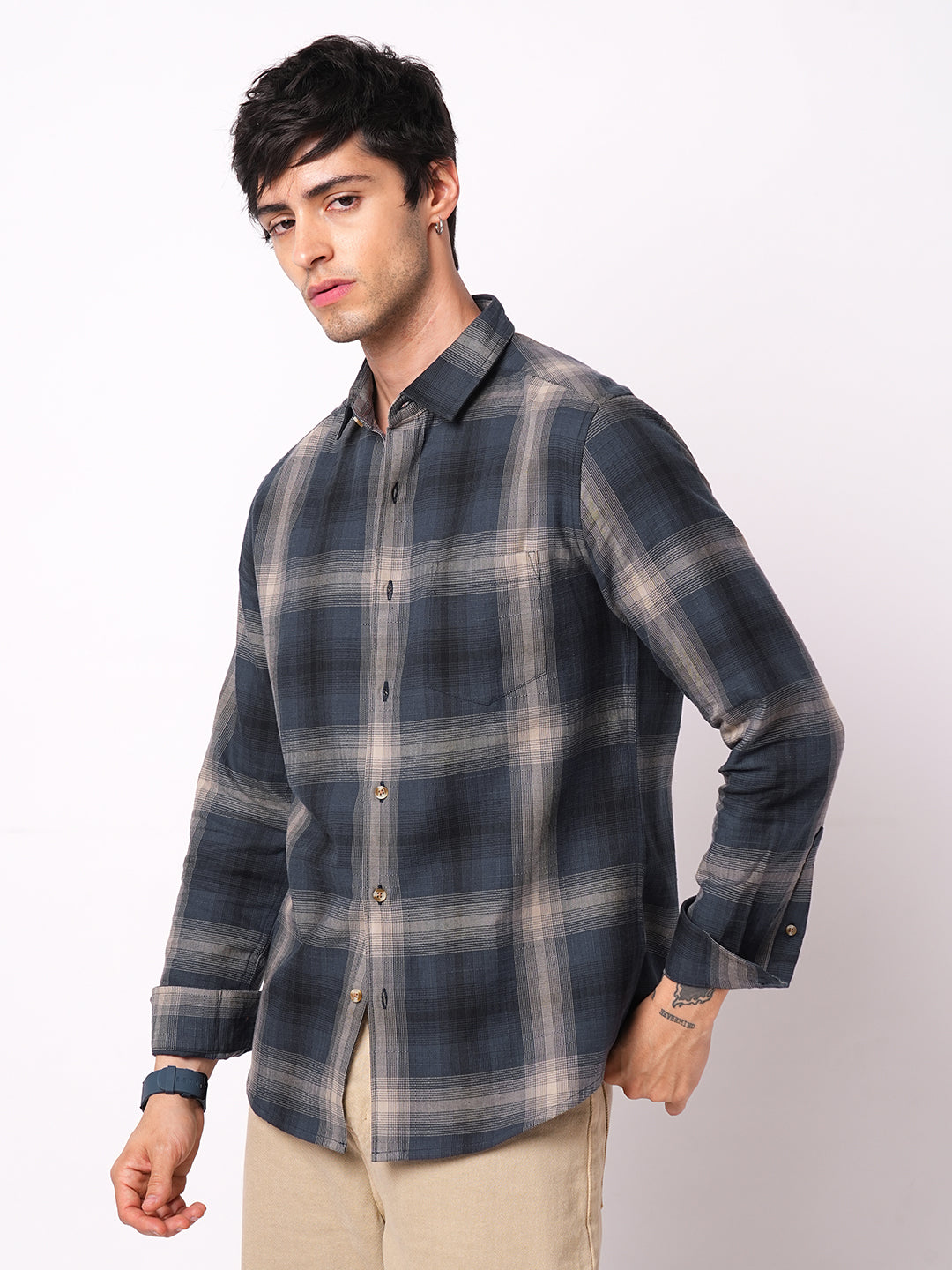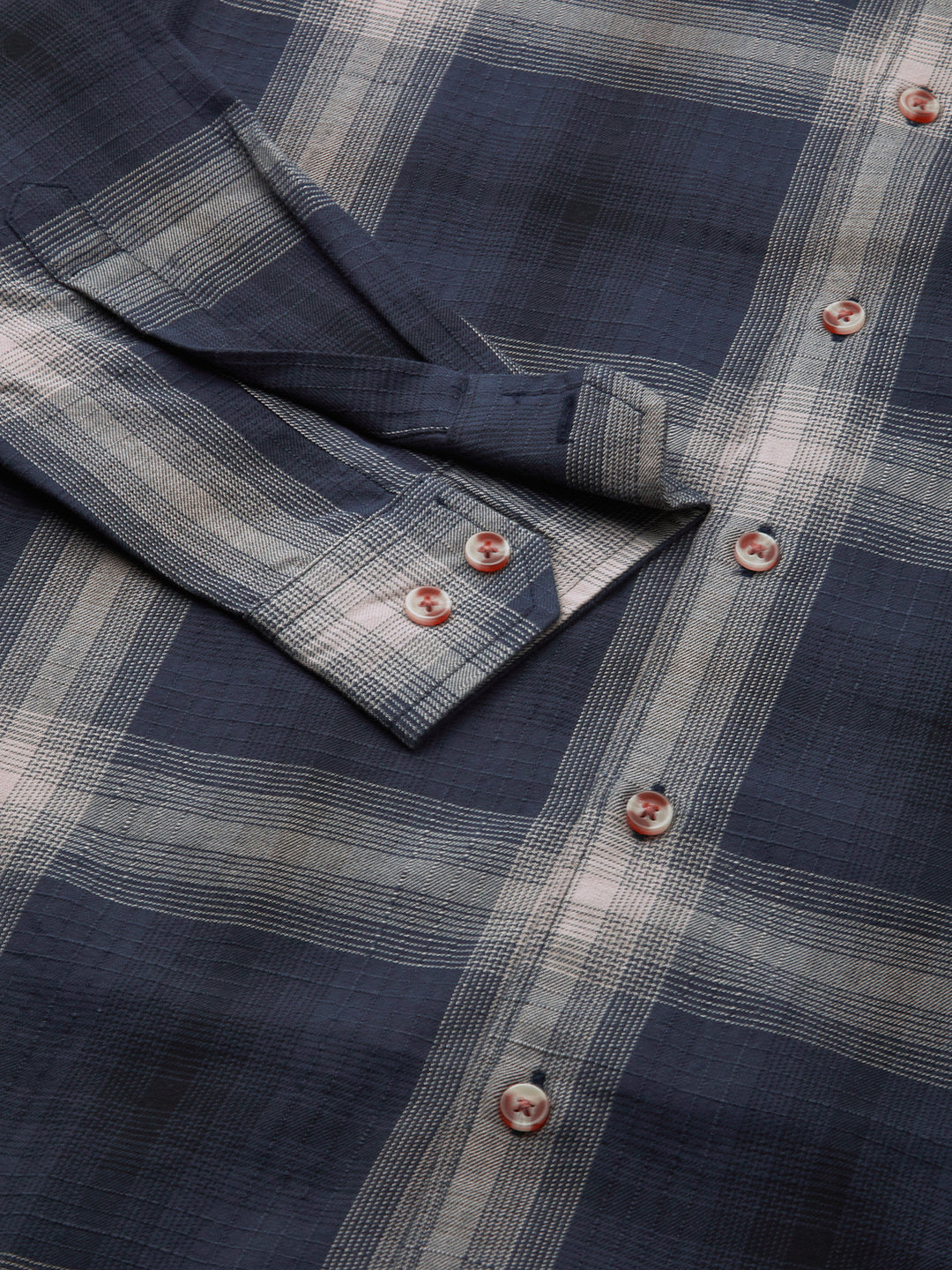 Stand out with this Premium Cotton Spiffy Space Blue Box Checks Textured Shirt, featuring a bold checkered pattern in striking shades of blue. Crafted from soft, breathable cotton, this shirt delivers all-day comfort with a sharp, modern fit. Perfect for casual Fridays, brunches, or evening outing, it's your go-to for effortless smart-casual style.