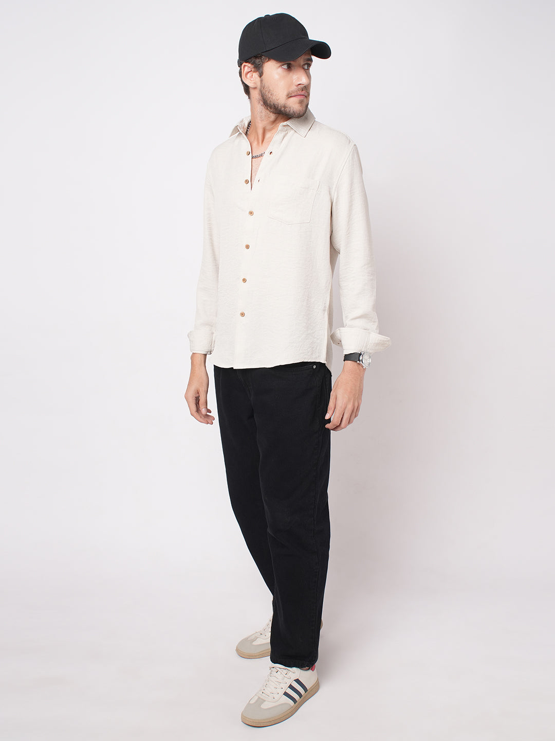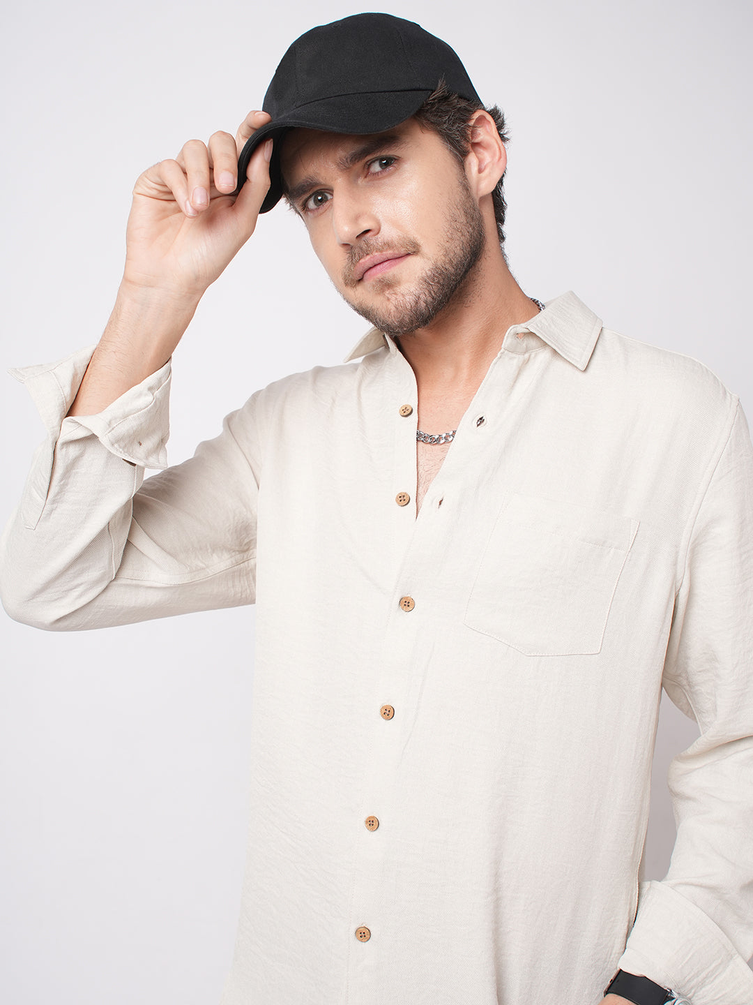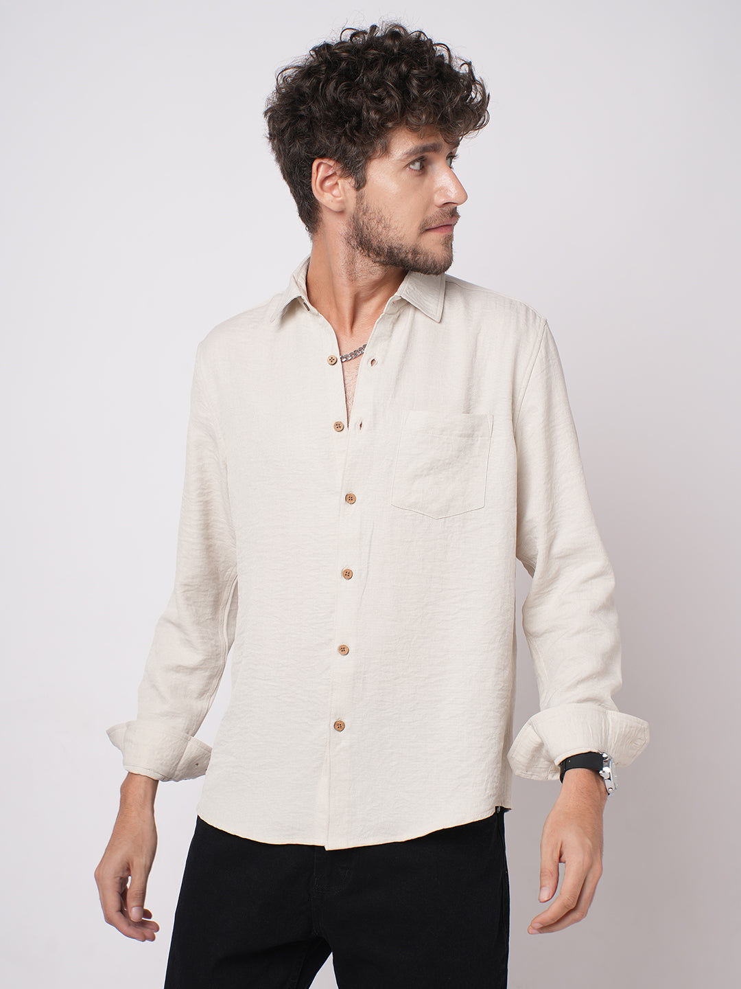 This Stone Beige Everyday Crinkled Shirt is designed to be your go-to essential for effortless styling. Its neutral beige tone makes it versatile and easy to pair with anything in your wardrobe. Crafted from a soft, breathable fabric, it ensures all-day comfort while keeping your look sharp. Perfect for work or casual outings, this shirt is the kind you’ll reach for again and again.