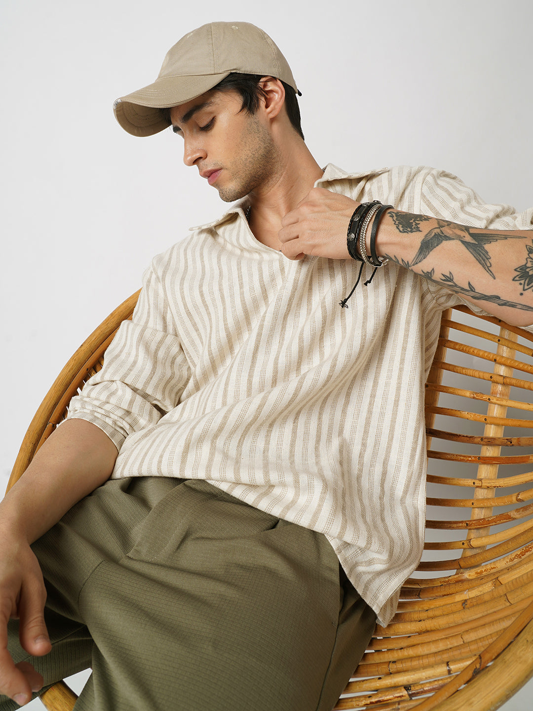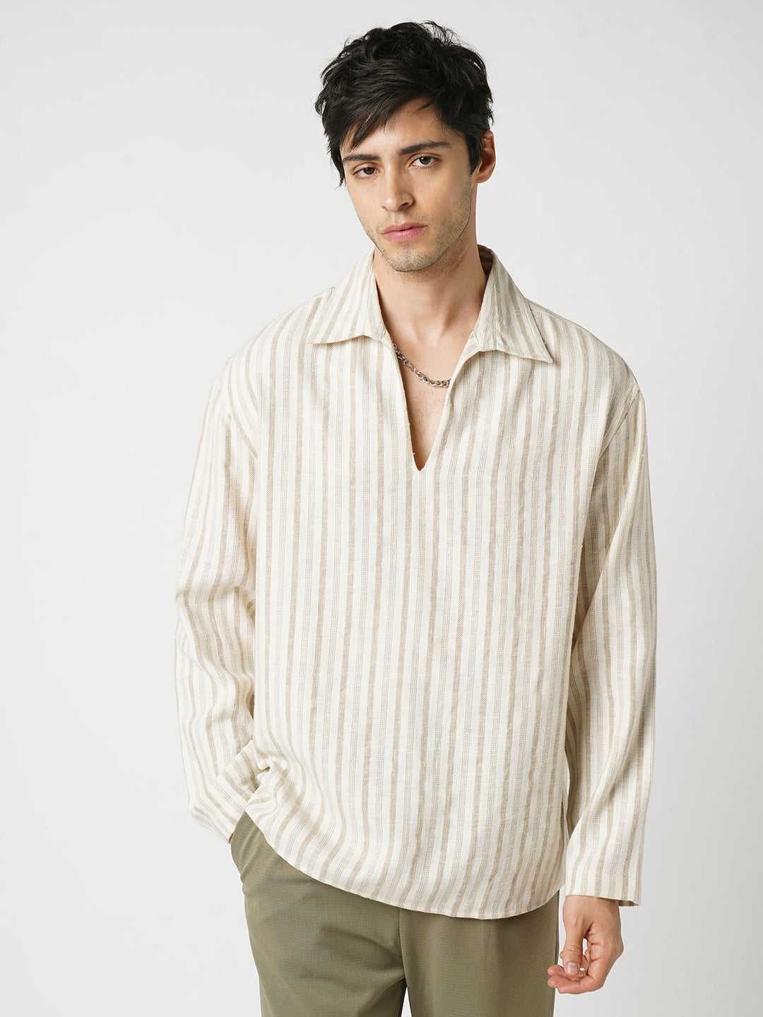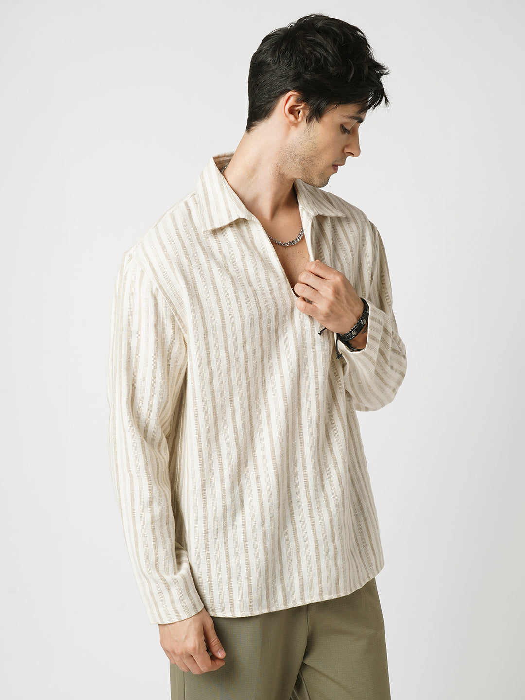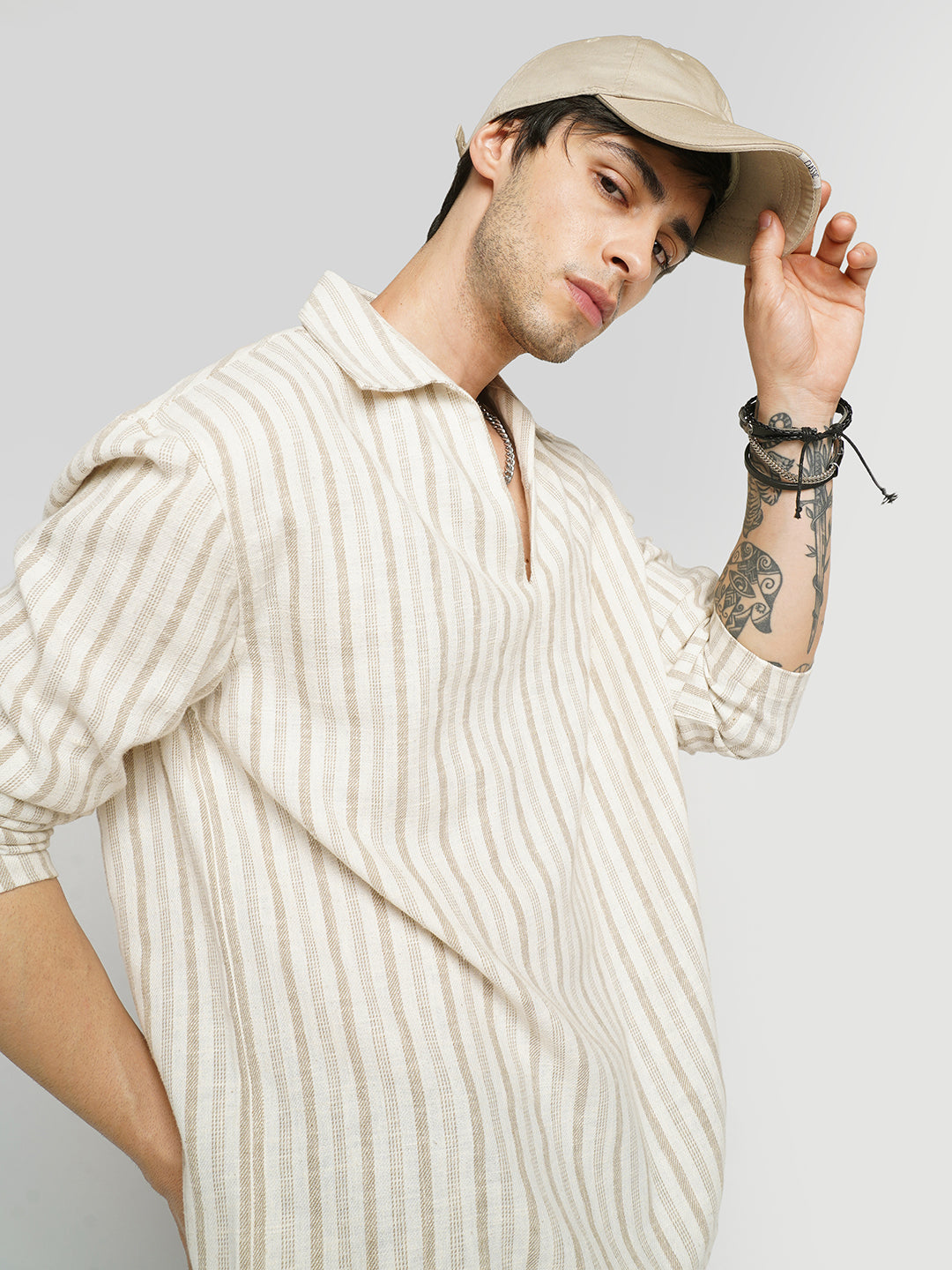 Easy, breezy, and made to stand out, this Sunbleached Cream Striped Polo Oversized Shirt is all about laid-back style. With its soft cream tones and subtle stripes, this shirt gives off a sun-faded, lived-in vibe that’s perfect for everyday wear.