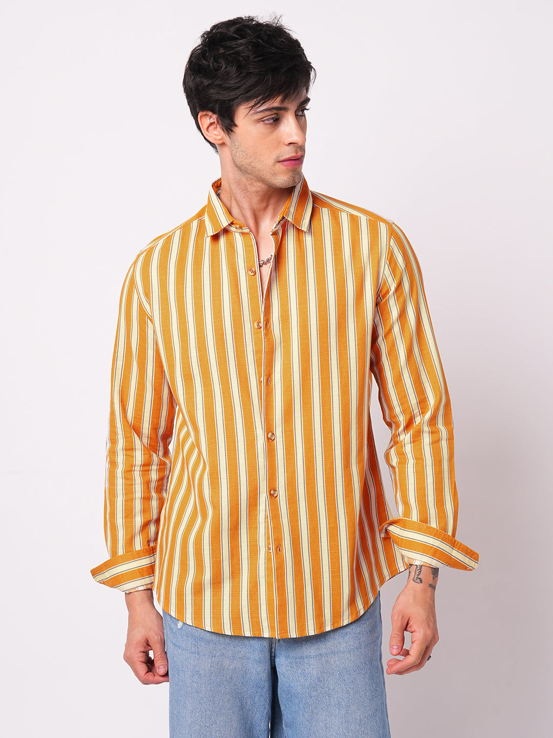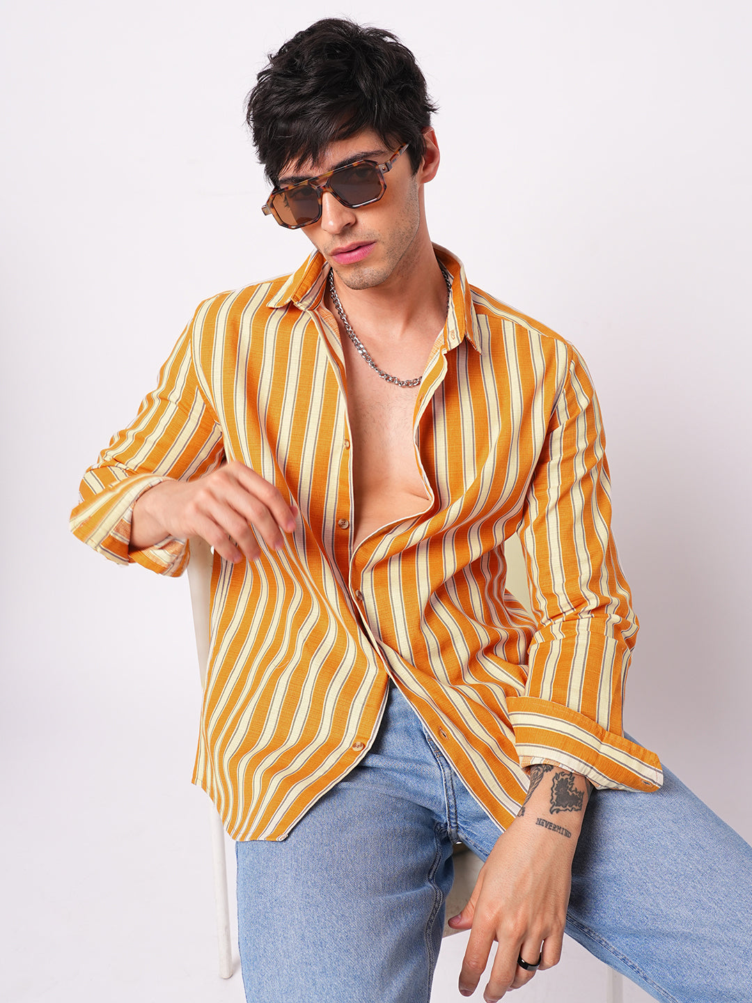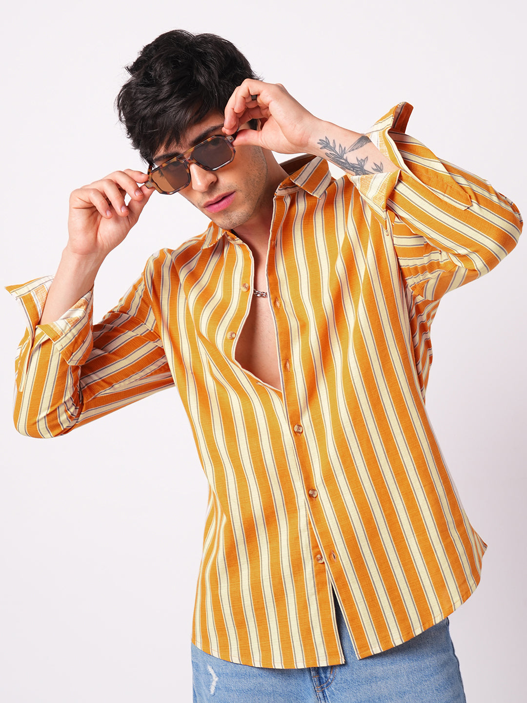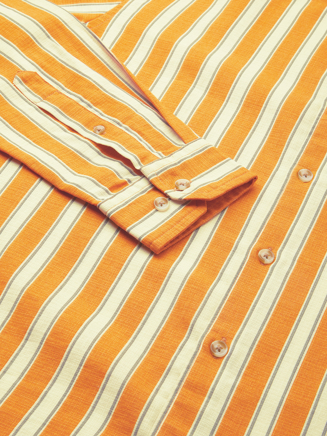 Brighten up your wardrobe with the bold and stylish Sunset Orange Vertical Stripe Shirt. Designed to make a statement, this shirt features crisp vertical stripes in rich sunset hues that elongate the frame and add a modern edge to a classic silhouette. Crafted from lightweight, breathable fabric, it’s perfect for warm-weather days, casual gatherings, or dressing up with tailored pants.