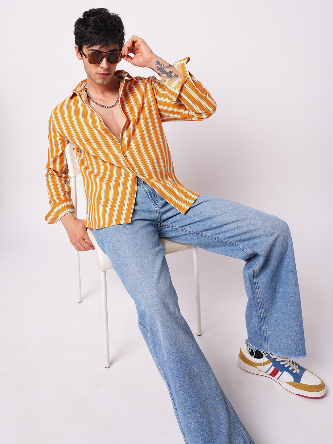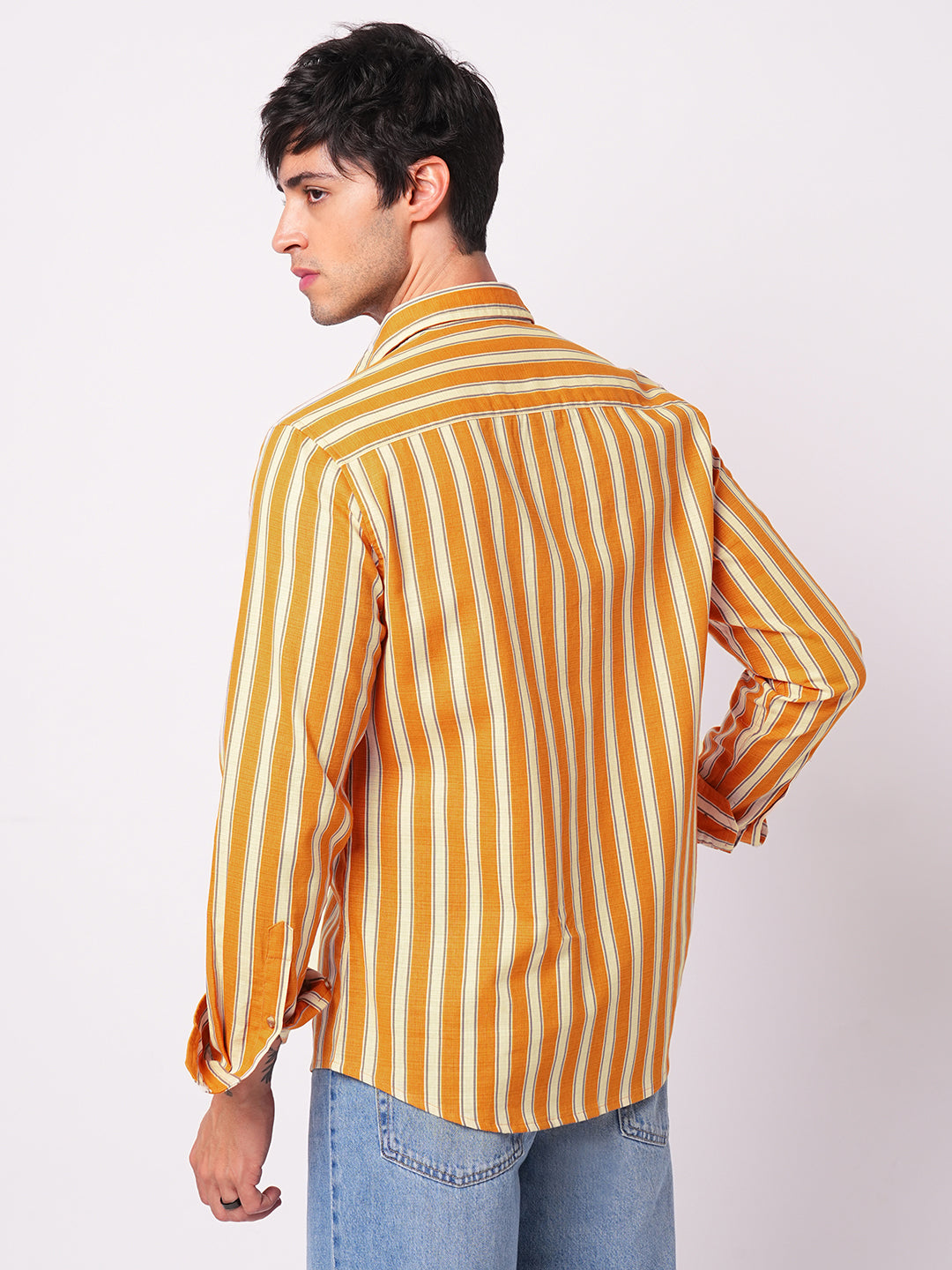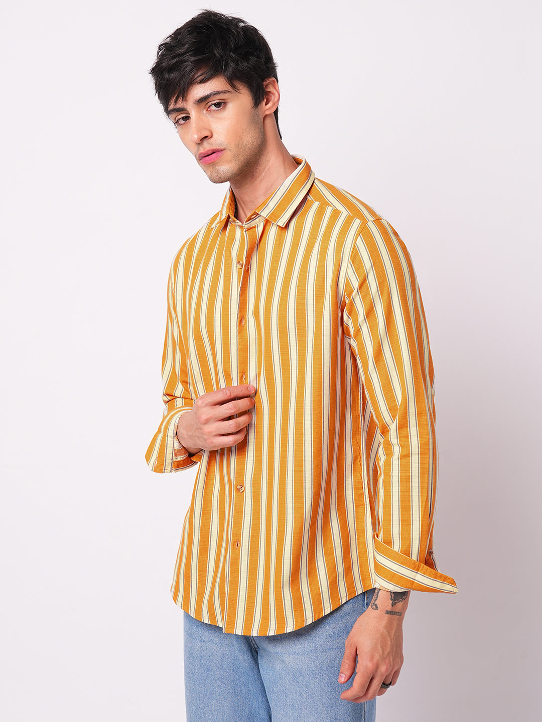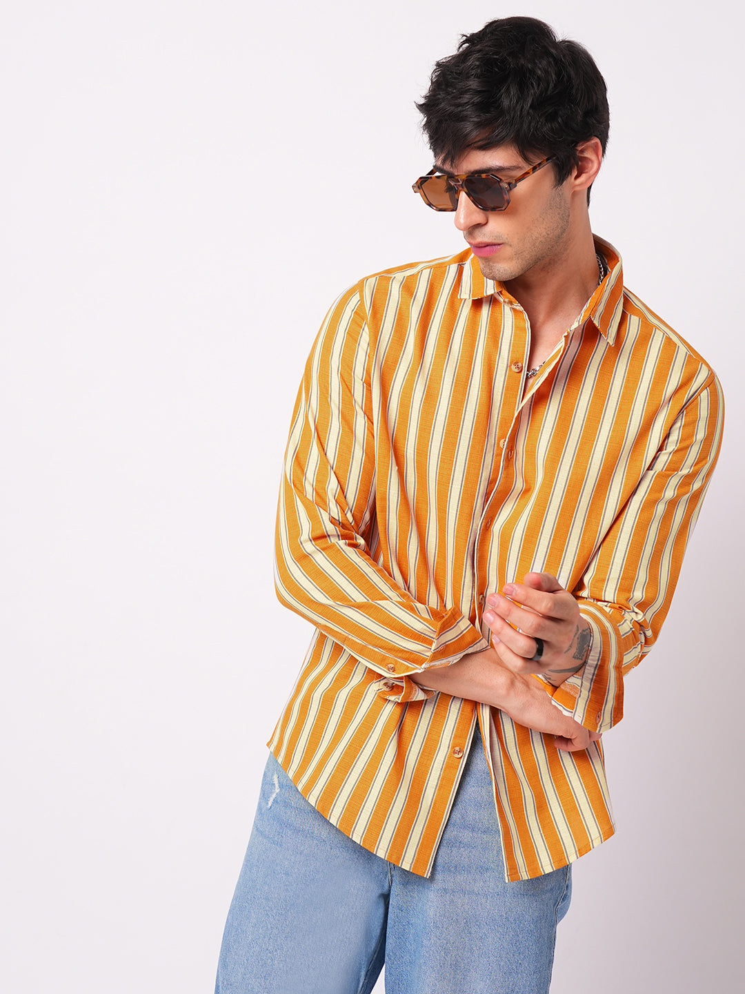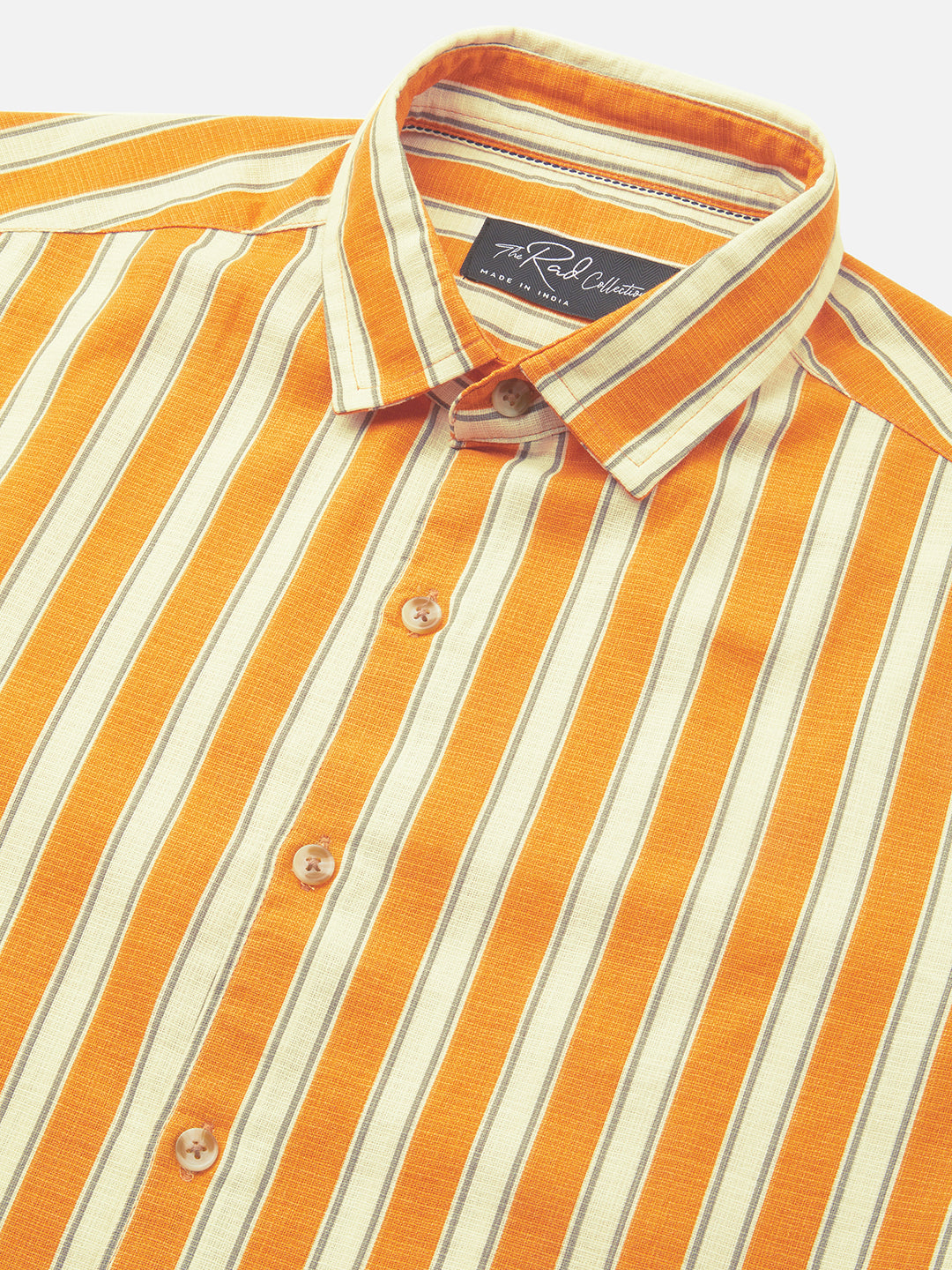 Brighten up your wardrobe with the bold and stylish Sunset Orange Vertical Stripe Shirt. Designed to make a statement, this shirt features crisp vertical stripes in rich sunset hues that elongate the frame and add a modern edge to a classic silhouette. Crafted from lightweight, breathable fabric, it’s perfect for warm-weather days, casual gatherings, or dressing up with tailored pants.