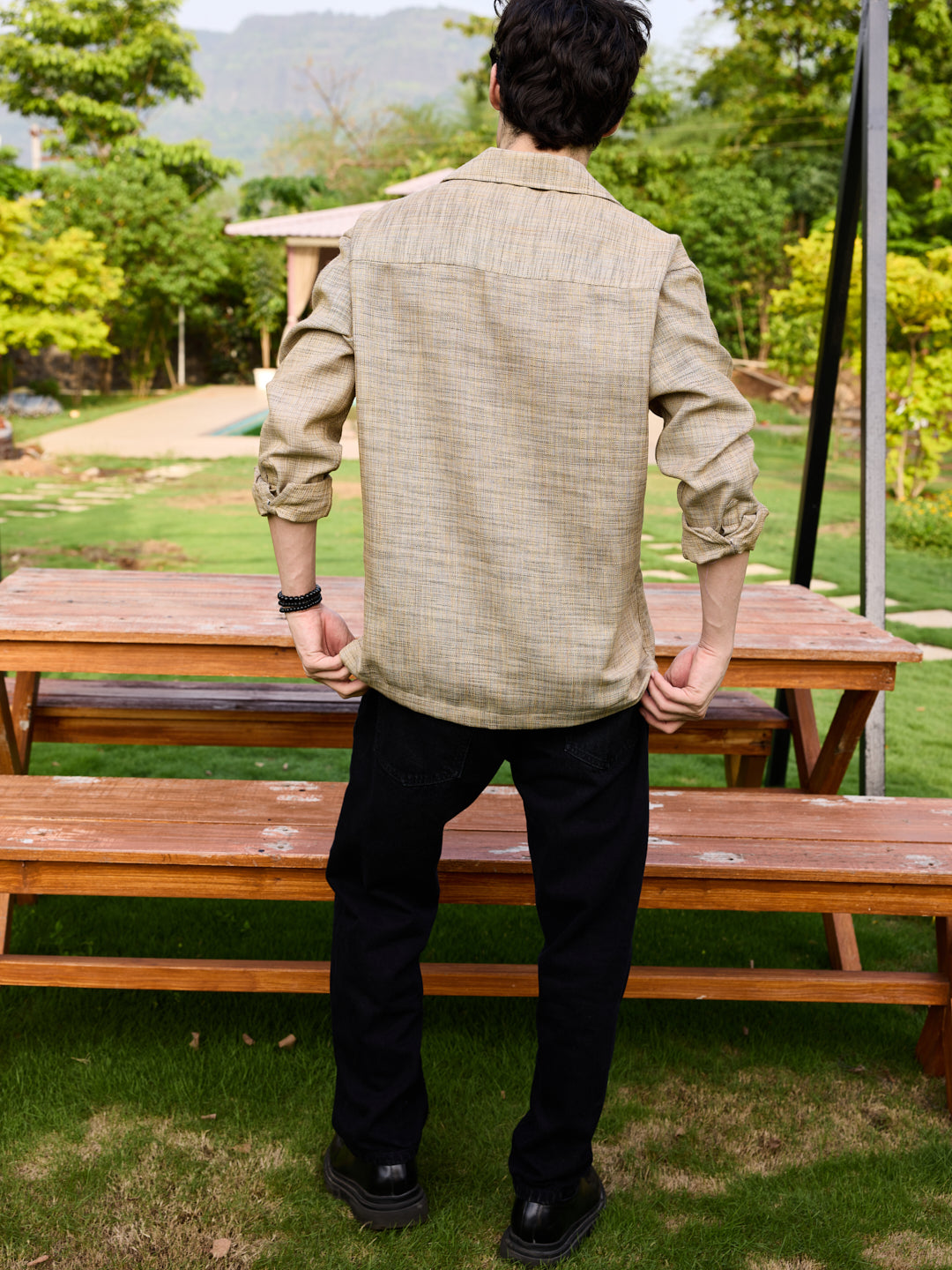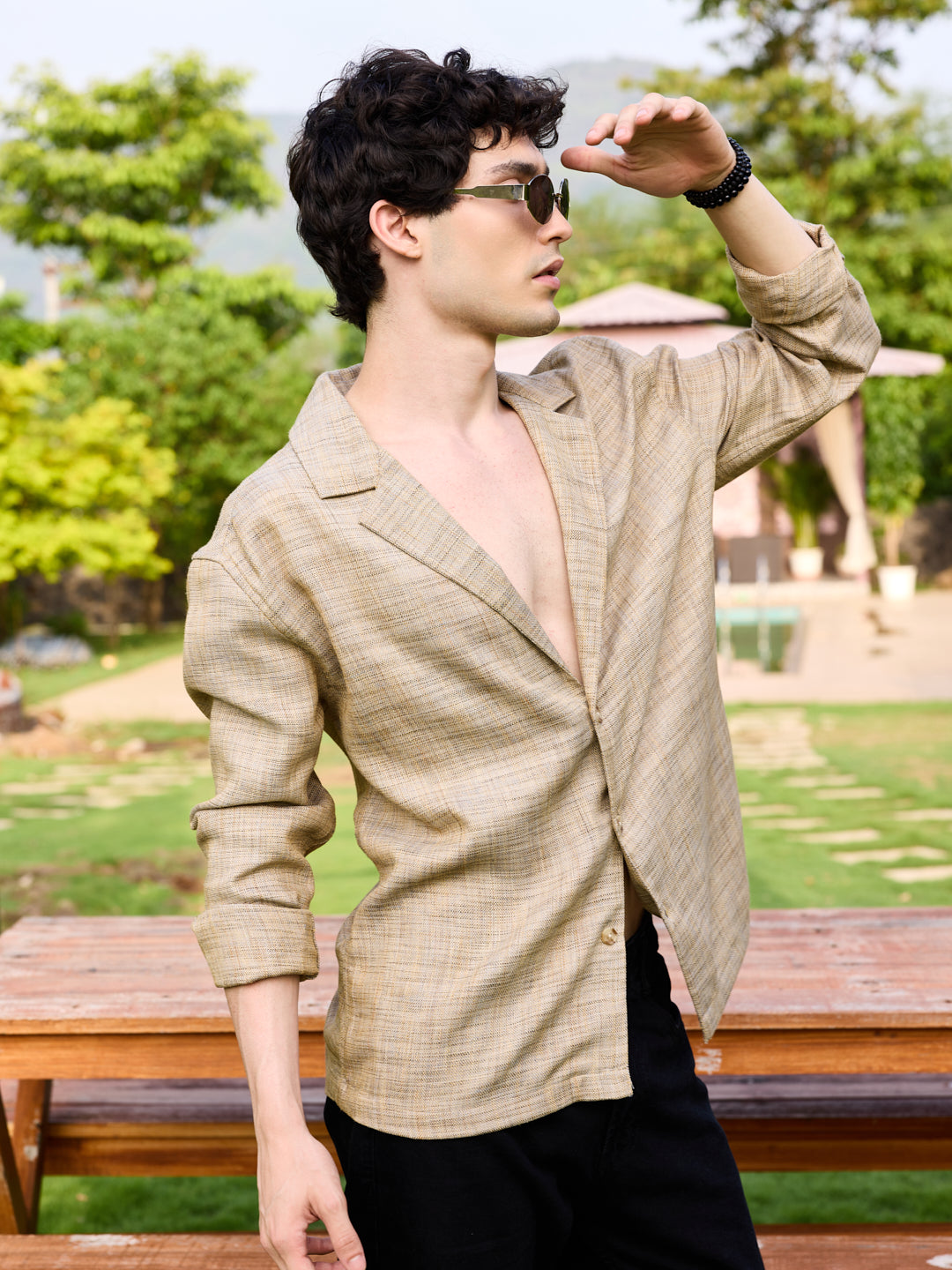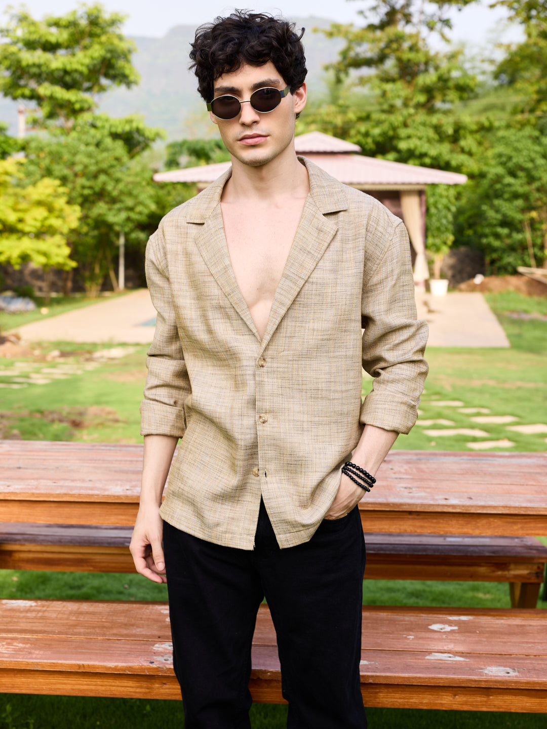 Redefine effortless style with this blazer collar shirt by Vastrado, designed for the modern gentleman. The soft textured fabric in a classic beige shade offers a refined yet relaxed appeal, making it a must-have in your wardrobe. Pair it with tailored trousers and loafers for an elegant evening look, or go for a relaxed vibe with linen shorts and sneakers. Whether you're heading to a brunch, a date, or a vacation, this shirt brings effortless sophistication to any occasion.
