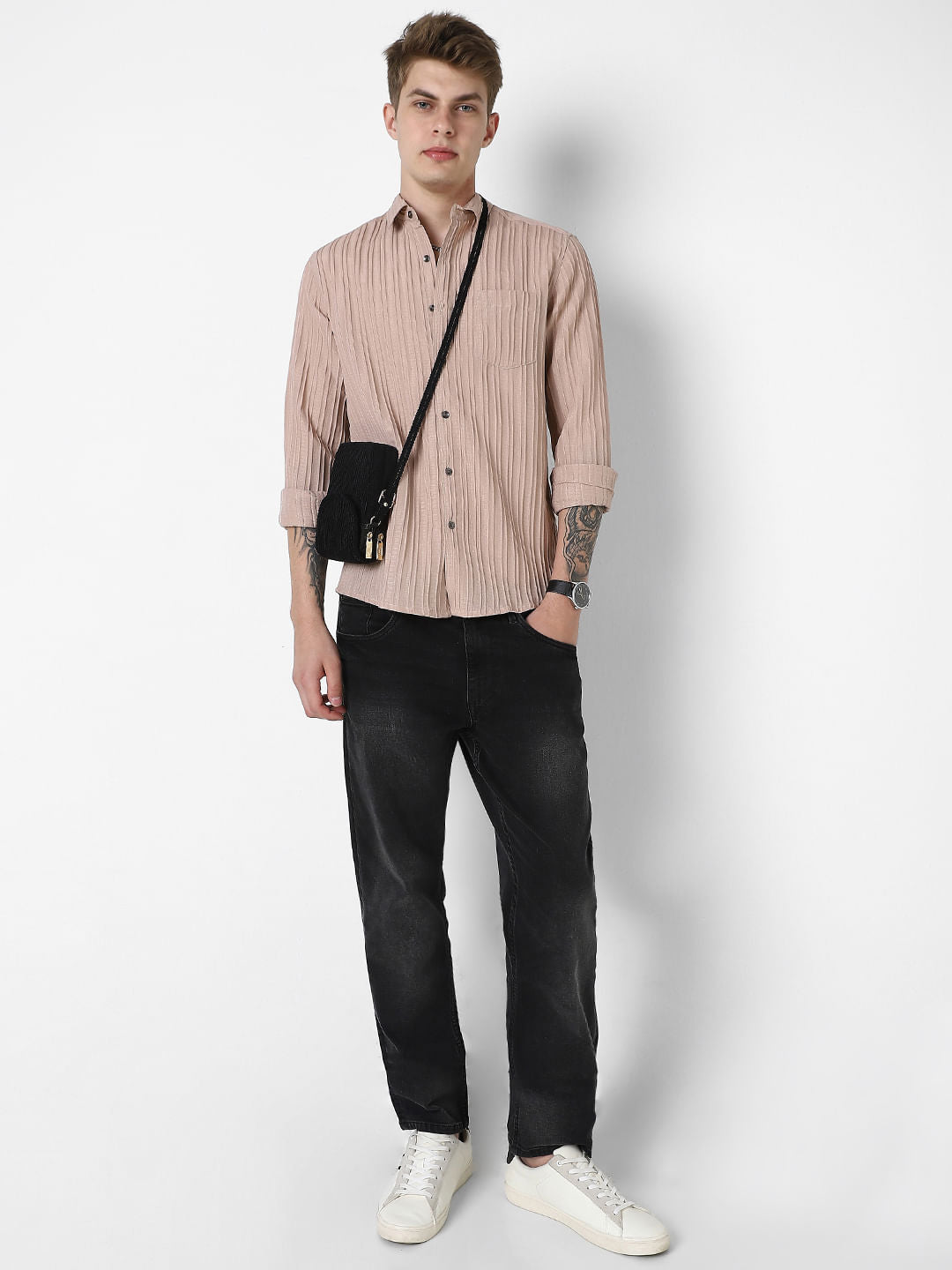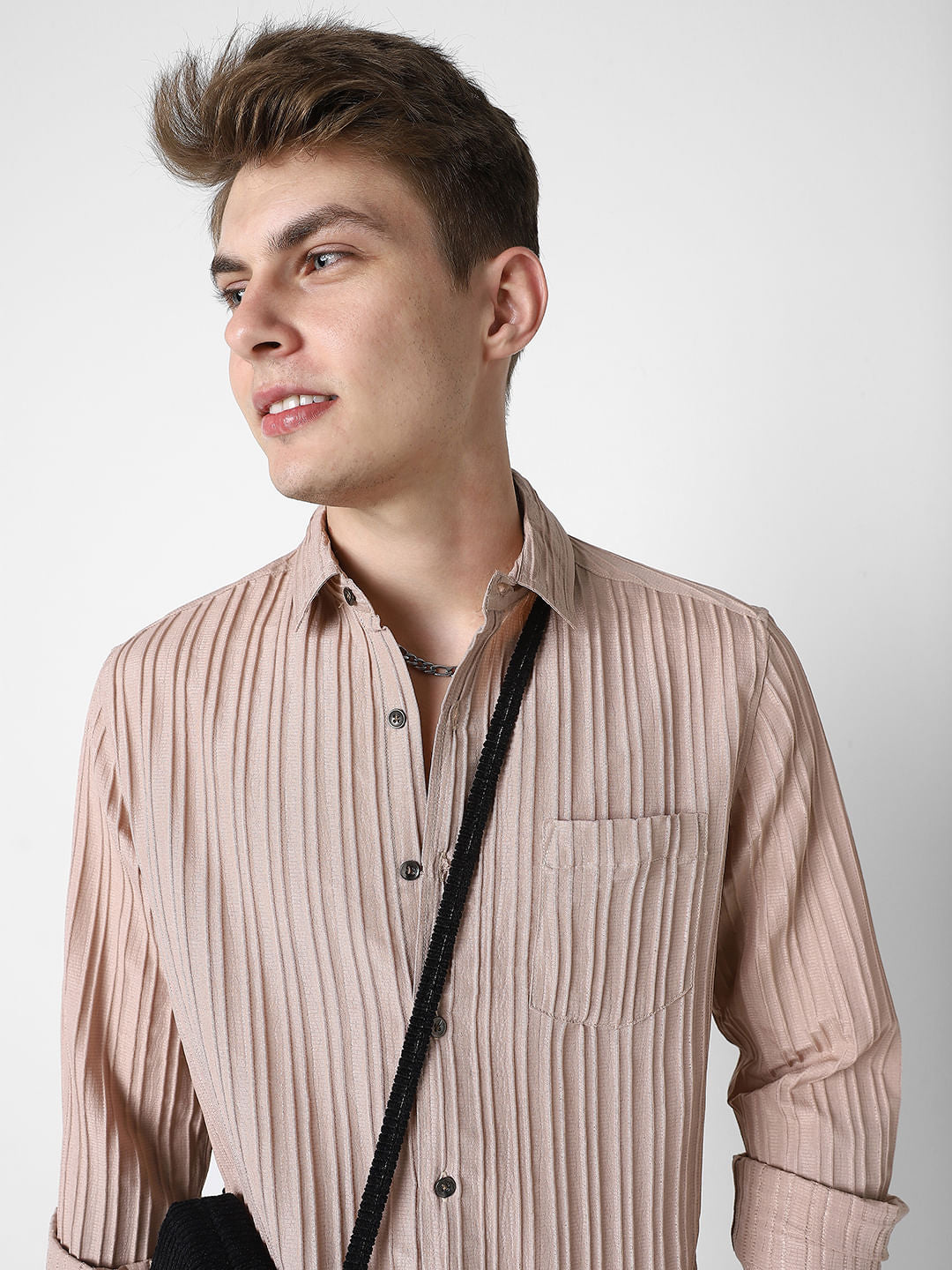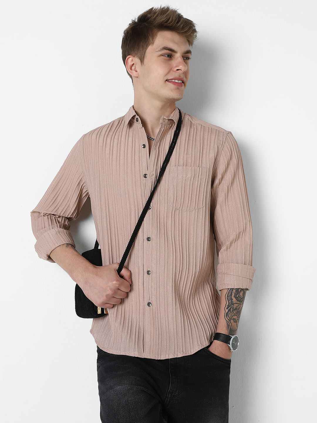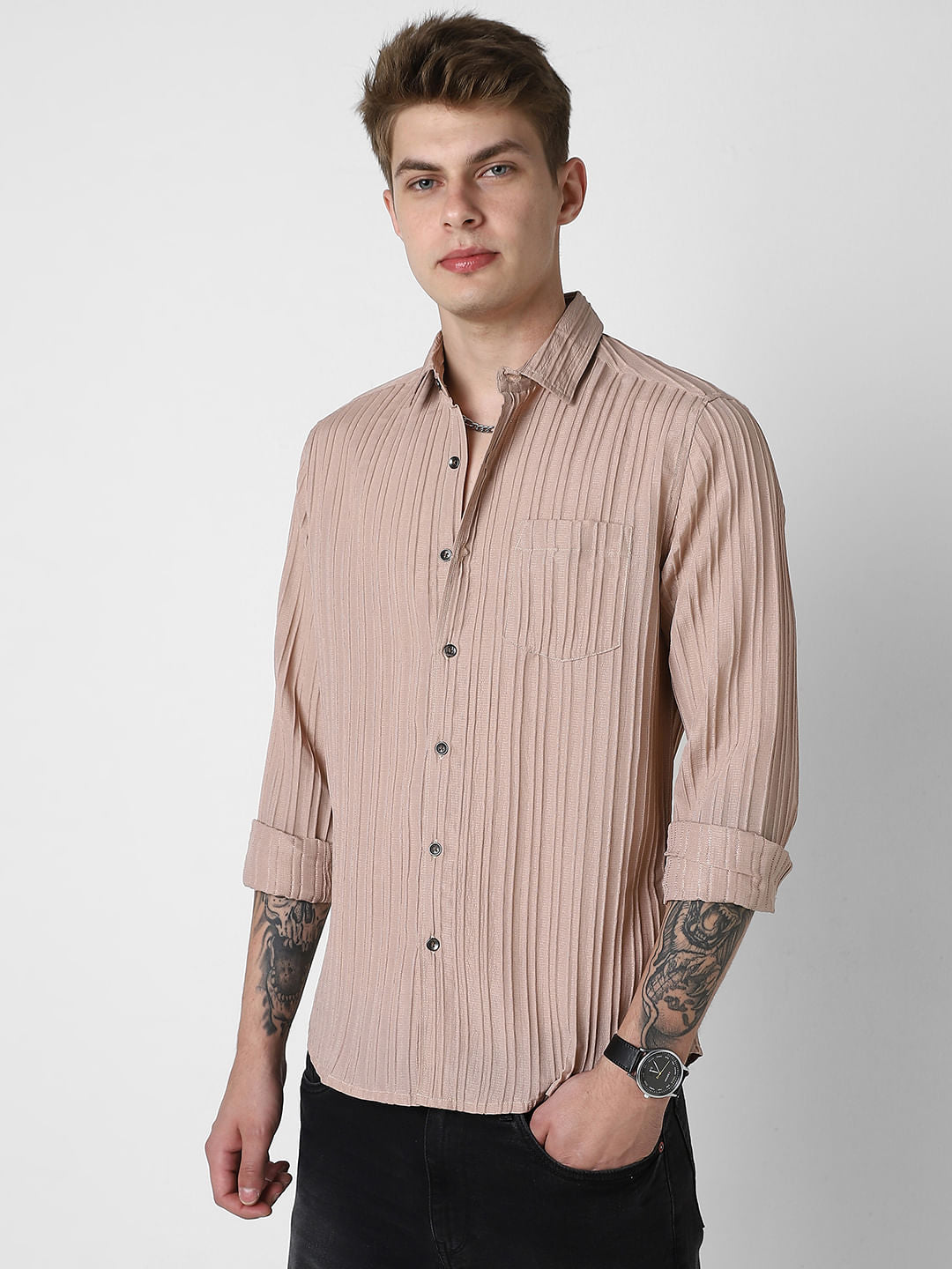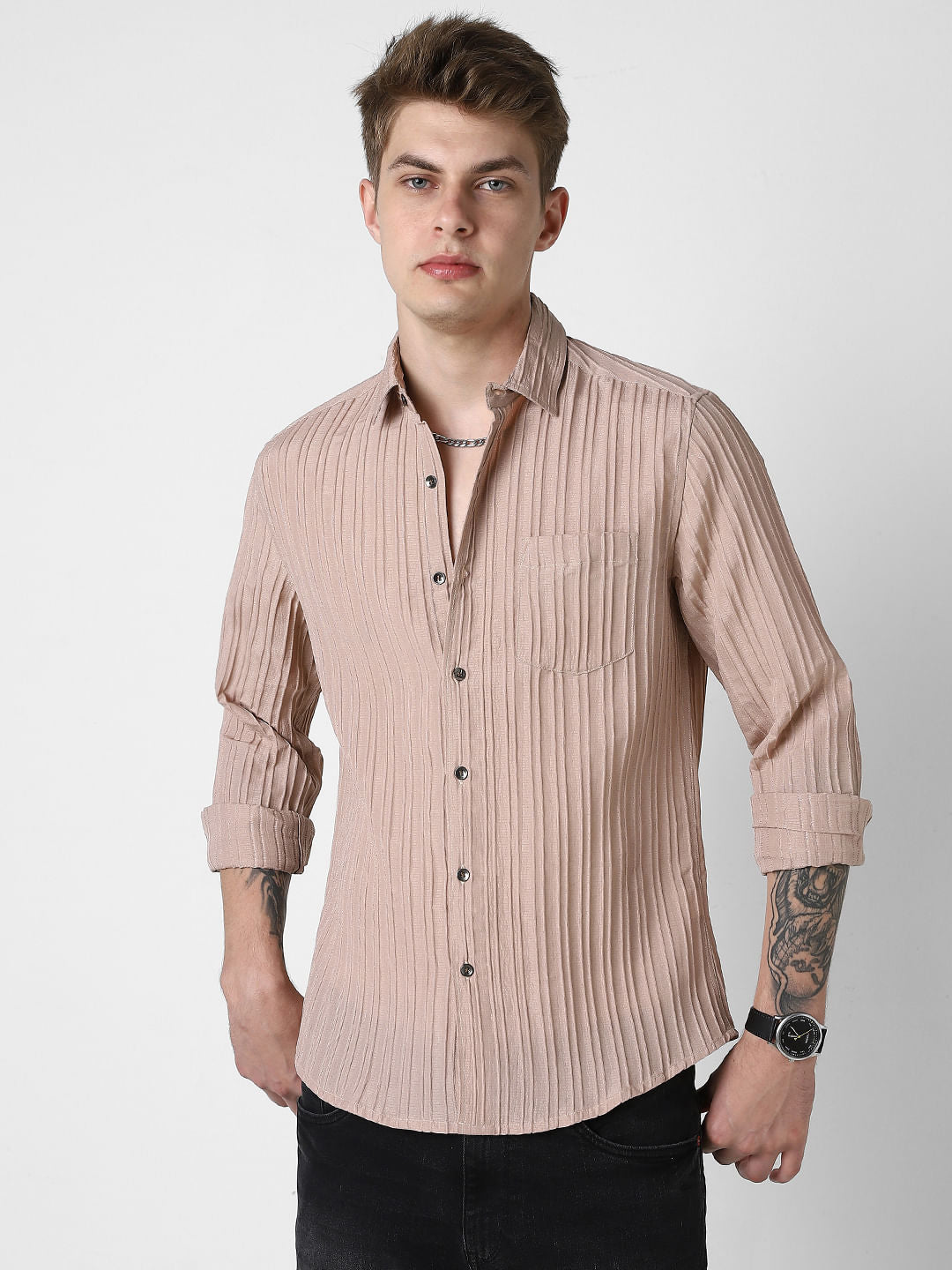 Step up your style game with our Tan Brown Line Textured Shirt. Featuring a striking textured line pattern, this shirt brings texture and depth to your look. Effortlessly chic and comfortable, it's a must-have for any fashion-forward wardrobe.