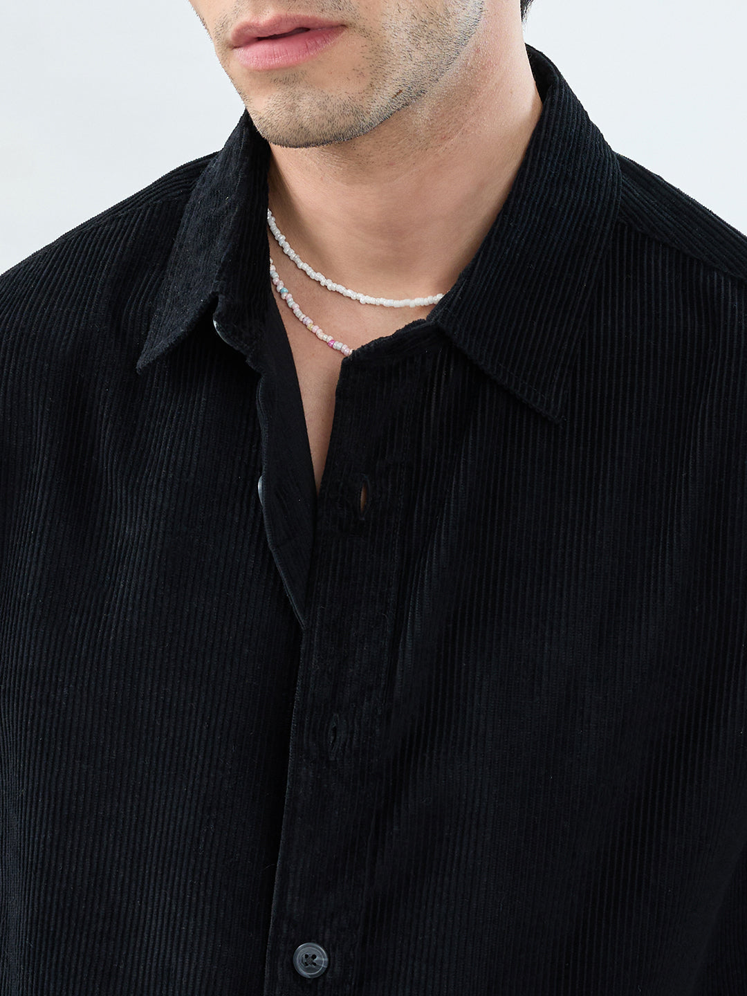 Timeless Black Corduroy Boxy Fit Crop Shirt