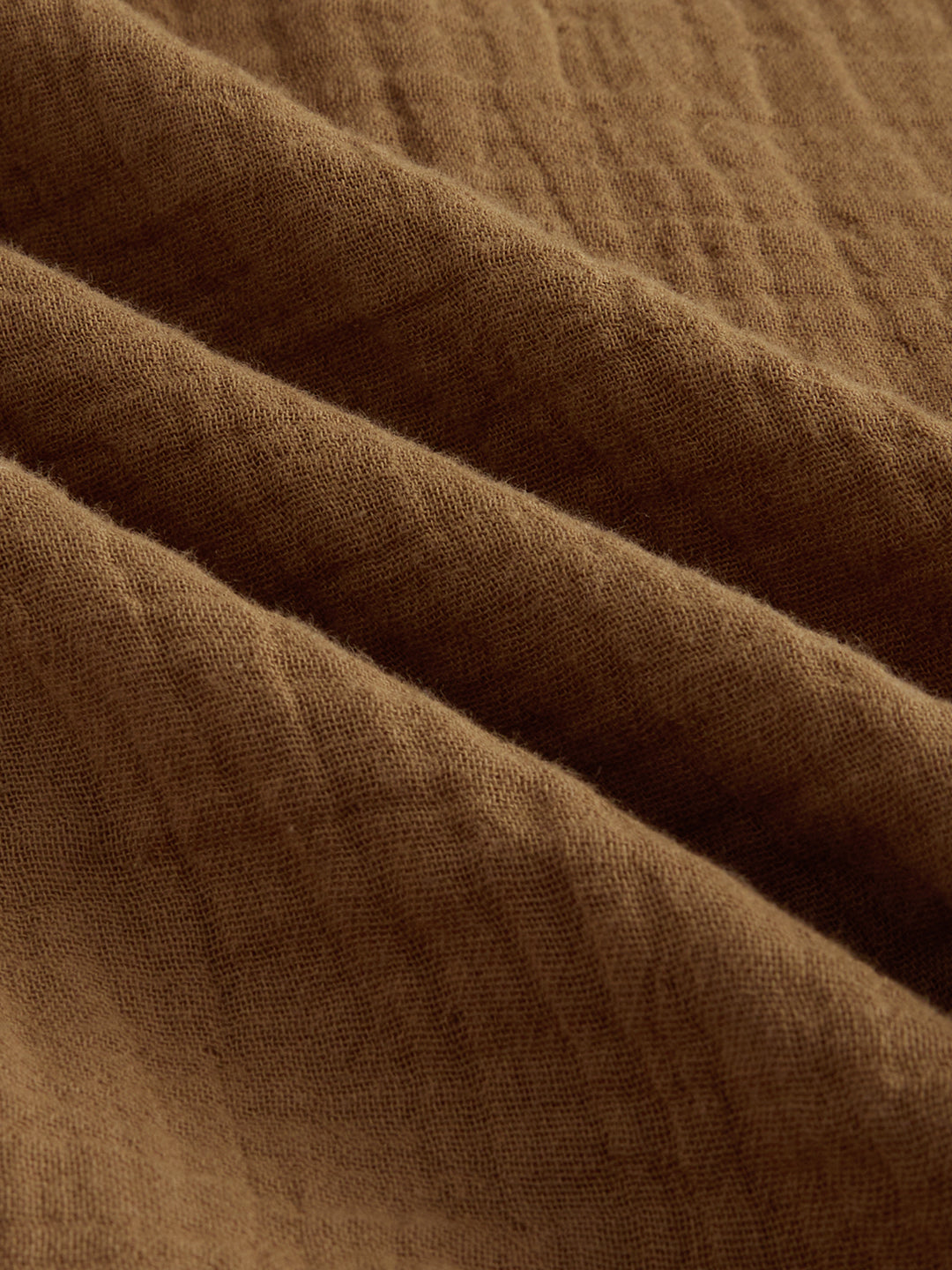 Warm Tan Textured Cuffless Double Cloth Oversized Shirt