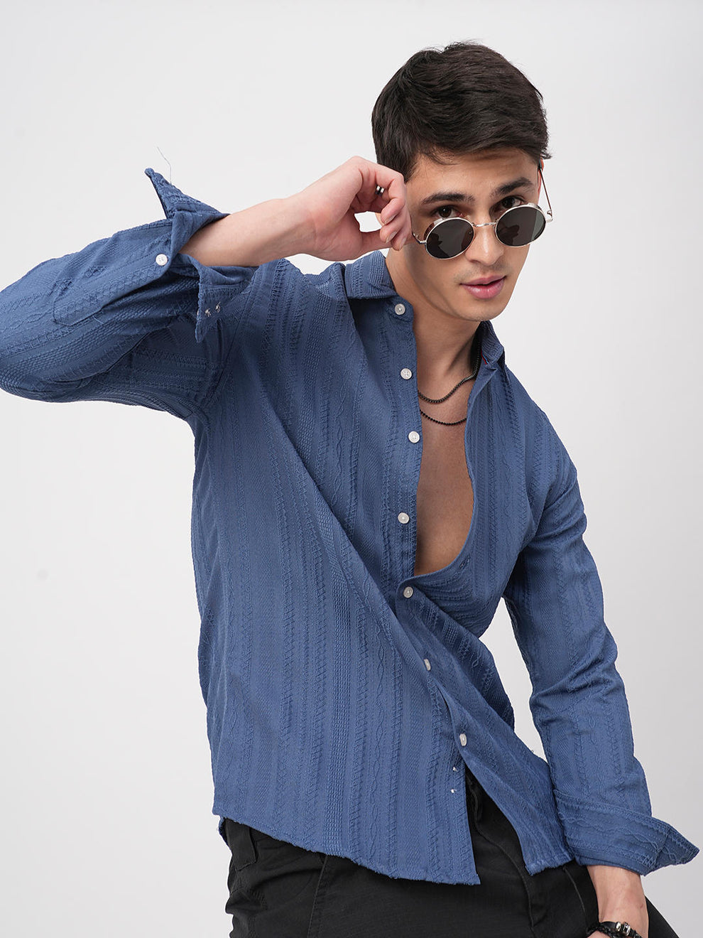 This Yale Blue Jacquard Shirt adds a touch of texture and sophistication, transforming a casual staple into a style statement. Dress it up with tailored trousers for a polished look or keep it casual with rolled sleeves and chinos for weekend adventures. This shirt is a wardrobe essential that transitions seamlessly from work to play. Invest in comfort and style that never goes out of fashion.
